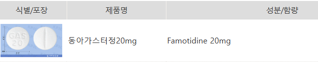 - 함량: 1정당 20mg의 파모티딘을 함유하고 있습니다.
