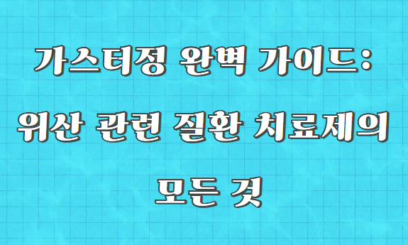안녕하세요! 위장 건강으로 고민하는 분들을 위해, 오늘은 가스터정에 대해 자세히 알아보겠습니다. 가스터정은 위산 억제제로 위장 질환의 예방과 치료에 널리 사용되는 약물입니다. 그럼 이 약물에 대해 하나씩 살펴보겠습니다.