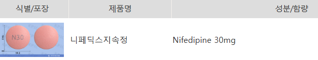 - 함량: 1정당 30mg의 니페디핀 함유