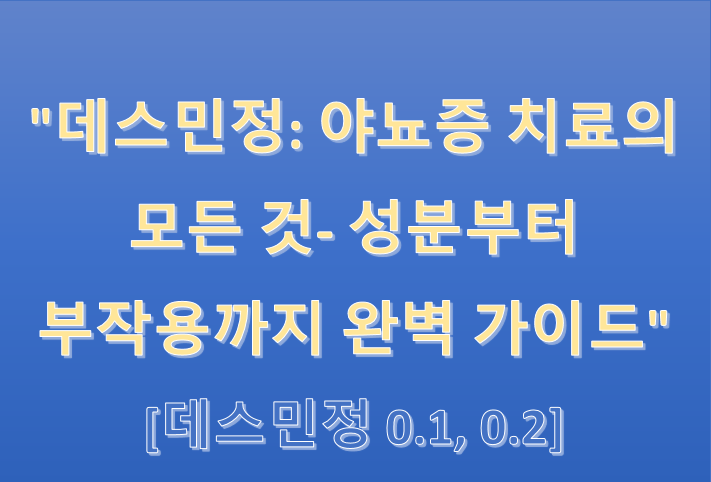 야뇨증(야간에 소변을 자주 보는 증상)으로 고민하는 분들을 위해 '데스민정'에 대한 정보는 매우 중요할 수 있습니다. 데스민정은 야뇨증 치료에 널리 사용되는 약물로, 주로 야간 빈뇨를 완화하는 데 도움을 줍니다. 이제 데스민정의 주요 성분과 효과, 부작용 등에 대해 자세히 알아보겠습니다.