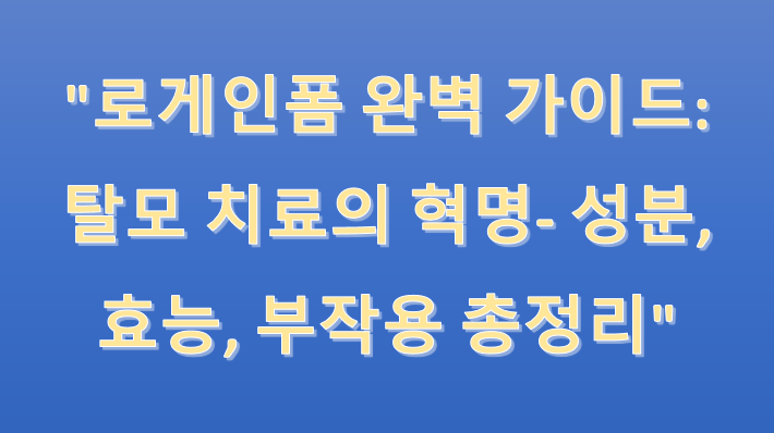로게인폼은 편리한 사용과 빠른 흡수, 쾌적한 향 등의 장점 덕분에 많은 사람들이 탈모 치료에 사용하고 있습니다. 사용하기 쉽고 효과적인 제품으로, 탈모 개선을 원하는 사람들에게 좋은 선택이 될 수 있습니다.