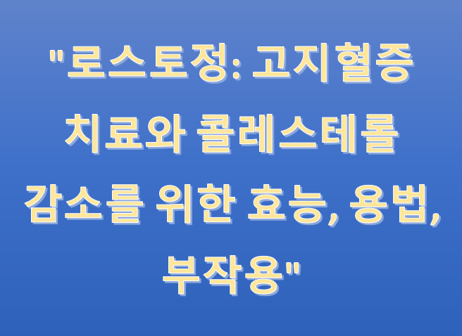 로스토정은 고지혈증 치료에 효과적인 약물로, LDL 콜레스테롤 수치를 감소시키는 데 도움을 줍니다. 그러나 사용 시 주의사항과 부작용을 충분히 이해하고, 의사와 상담 후 복용하는 것이 중요합니다.