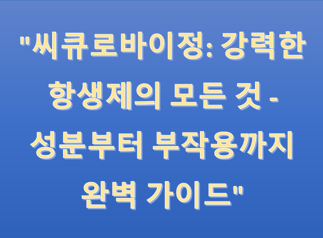 항생제 치료가 필요하신 분들, 주목해주세요! 오늘은 강력한 항생제 '씨큐로바이정'에 대해 자세히 알아보겠습니다. 성분부터 부작용까지, 꼭 알아야 할 정보를 모두 담았습니다.