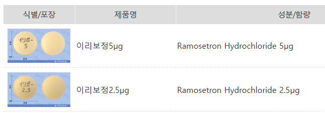 이리보정은 라모세트론염산염을 주요 성분으로 포함하며, 주로 2.5μg 또는 5μg의 용량으로 제공됩니다. 이 성분은 장의 운동을 제어하고 과민한 장의 활동을 억제하여 장의 통증을 완화하는 데 중요한 역할을 합니다.