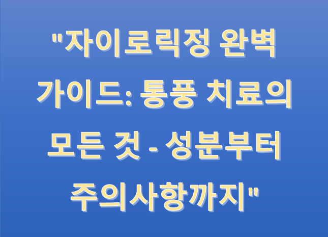 통풍으로 고민하시는 분들을 위한 자이로릭정에 대해 자세히 알아보겠습니다. 이 글에서는 성분, 효능부터 주의사항까지 모든 정보를 다룹니다.
