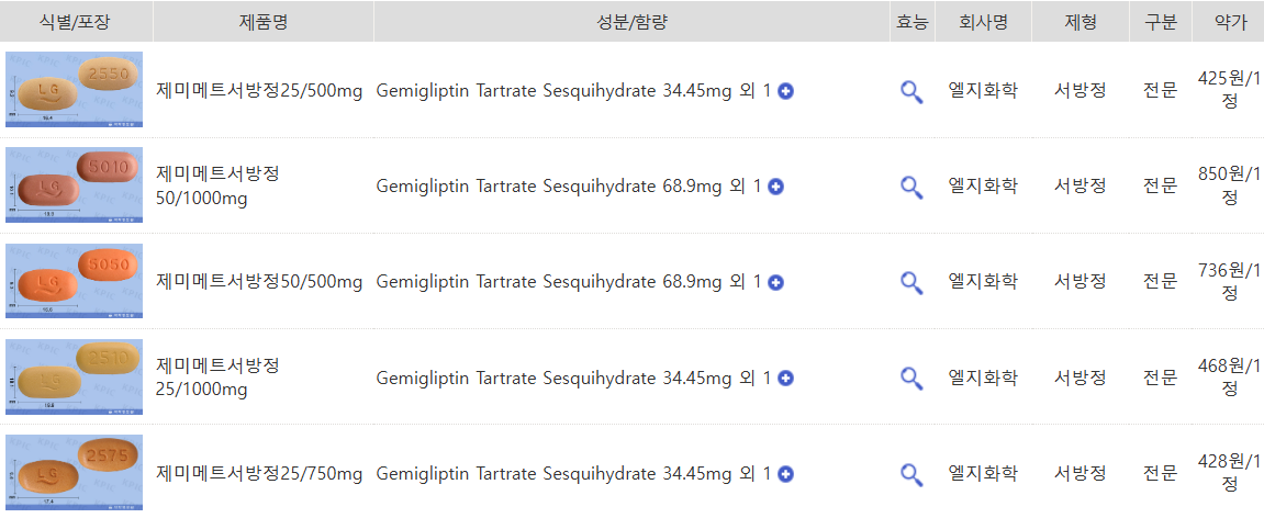 - 제미글립틴 (50mg):