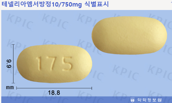 - 테넬리아엠서방정 10/750mg: 테네리글립틴 10mg, 메트포르민 750mg
