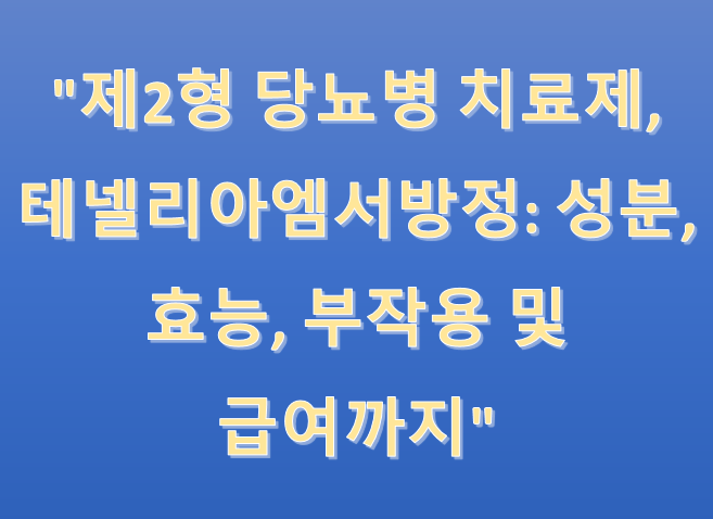 제2형 당뇨병은 인슐린 저항성이나 인슐린 분비 부족으로 혈당 조절이 어려운 질환입니다. 이때 중요한 치료 방법 중 하나가 바로 당뇨약입니다. 그중에서도 테넬리아엠서방정은 최근 많이 처방되는 약물 중 하나로, 혈당 조절에 효과적인 성분을 가지고 있습니다. 이번 글에서는 테넬리아엠방정의 성분, 효능과 효과, 적응증, 용법과 용량, 주의사항, 부작용, 급여 여부 등에 대해 상세히 알아보겠습니다.