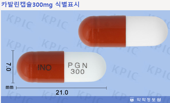 - 함량: 300mg (카발린캡슐 300mg 기준)