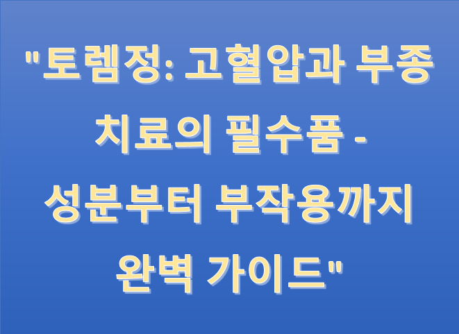 고혈압이나 부종으로 고민하시는 분들, 주목해주세요! 오늘은 효과적인 치료제 '토렘정'에 대해 자세히 알아보겠습니다. 성분부터 부작용까지, 꼭 알아야 할 정보를 모두 담았습니다.