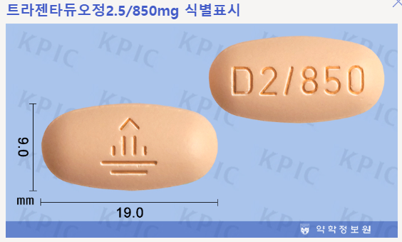 - 복용량: 보통 1일 2회, 850mg 메트포르민 + 2.5mg 리나글립틴 용량으로 복용합니다. 용량은 의사의 처방에 따라 조정될 수 있습니다.