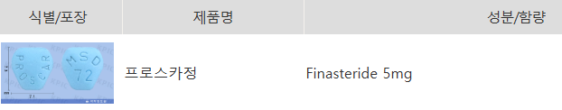 - 1 정당 함량: 5mg의 피나스테리드